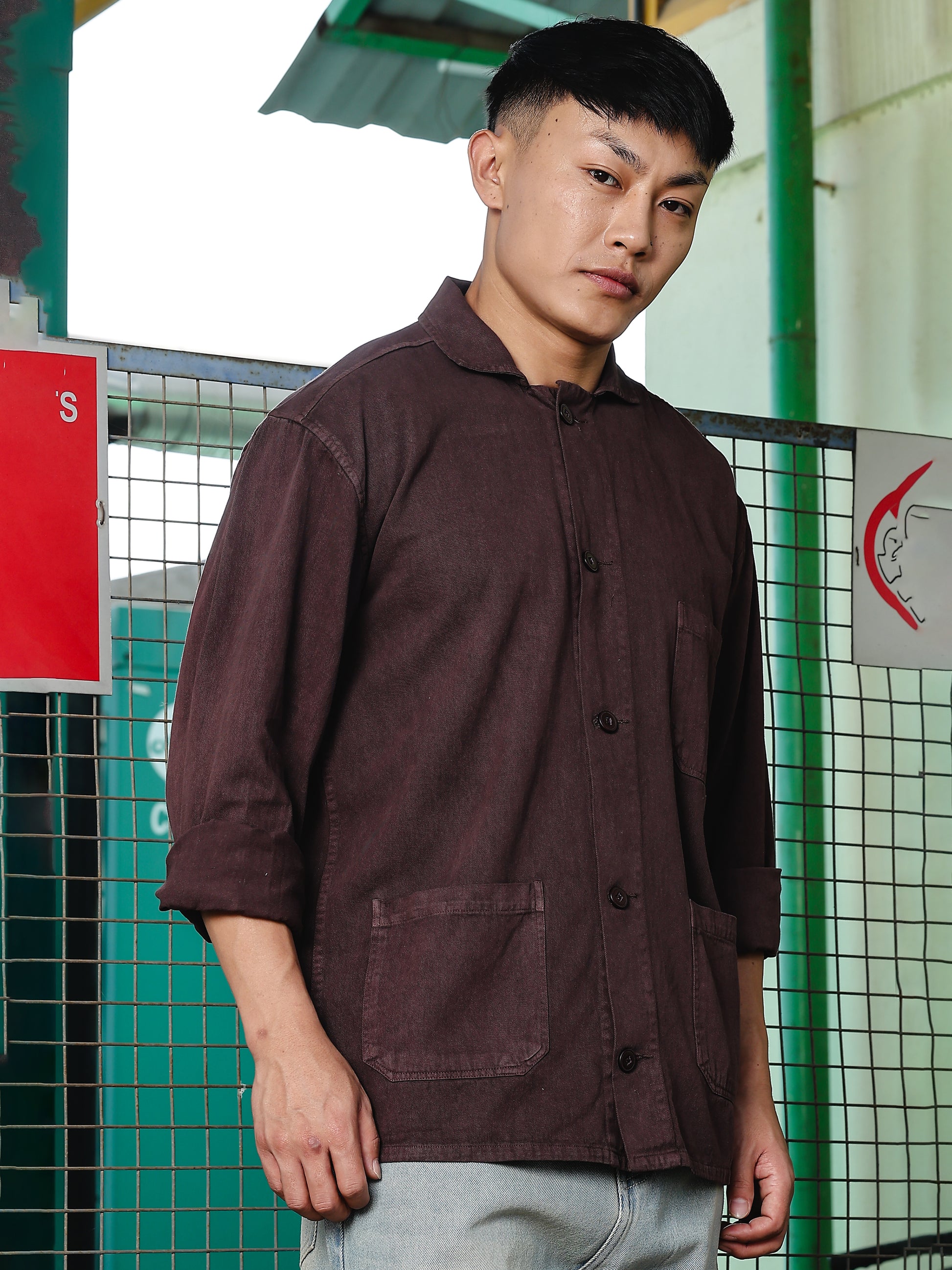 Step into effortless utility with our coffee brown Overshirt. Crafted in a relaxed boxy fit, this layering essential is designed for those who move between street and statement with ease. Made from durable yet breathable cotton blend, it features full front button closure, and a muted green tone that pairs with anything from distressed denim to cargos.