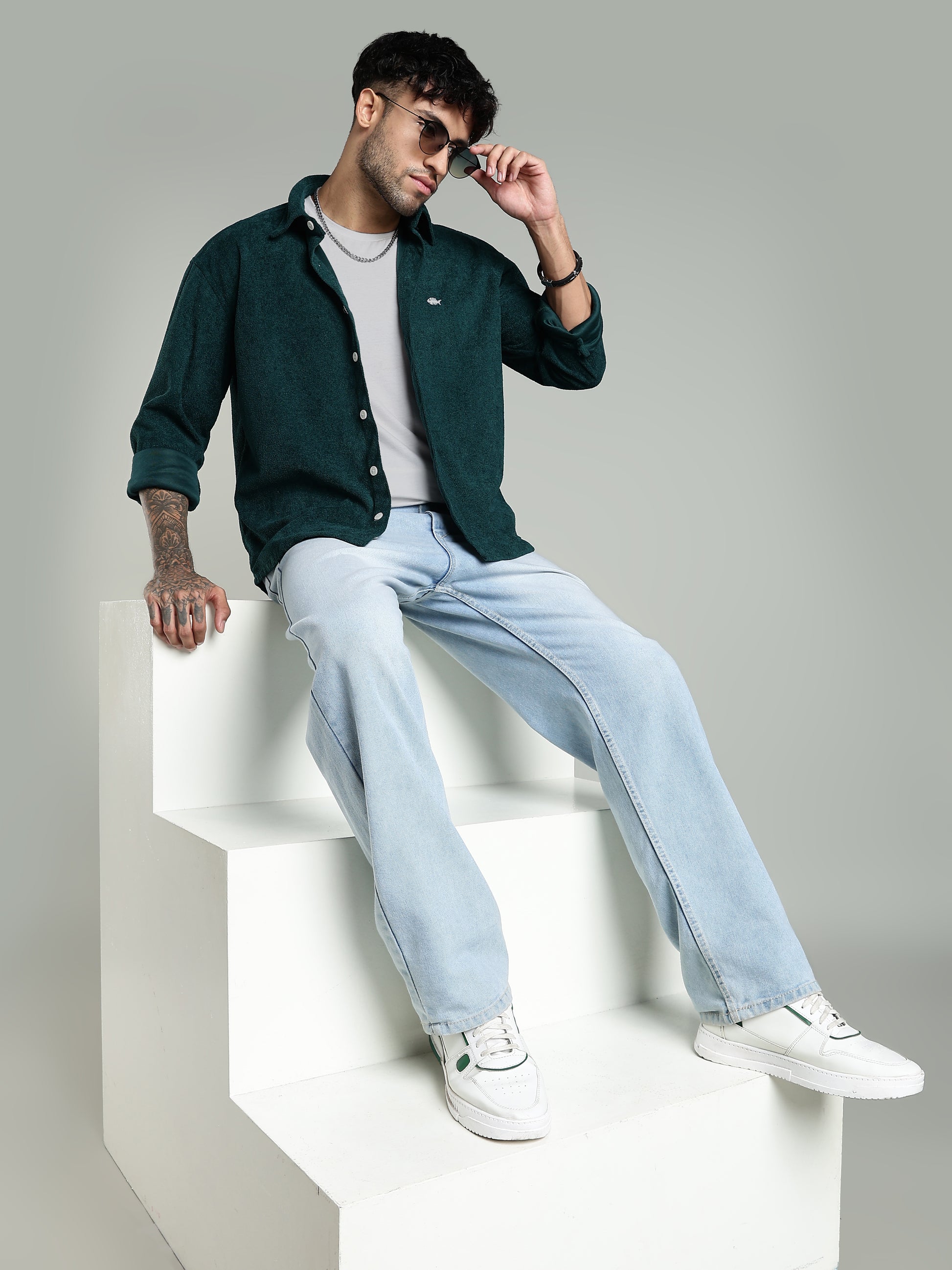 Green Soft Textured Shirt-Relaxed Fit